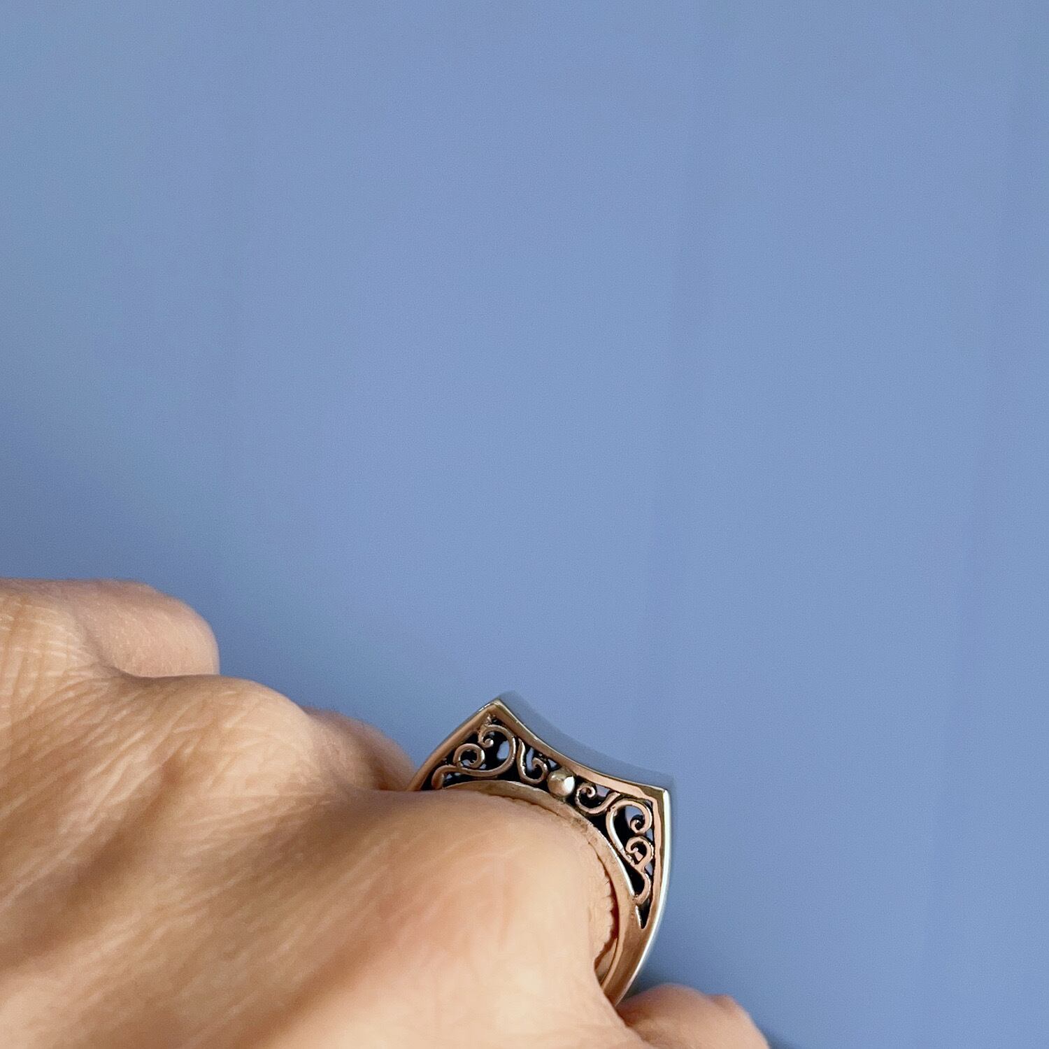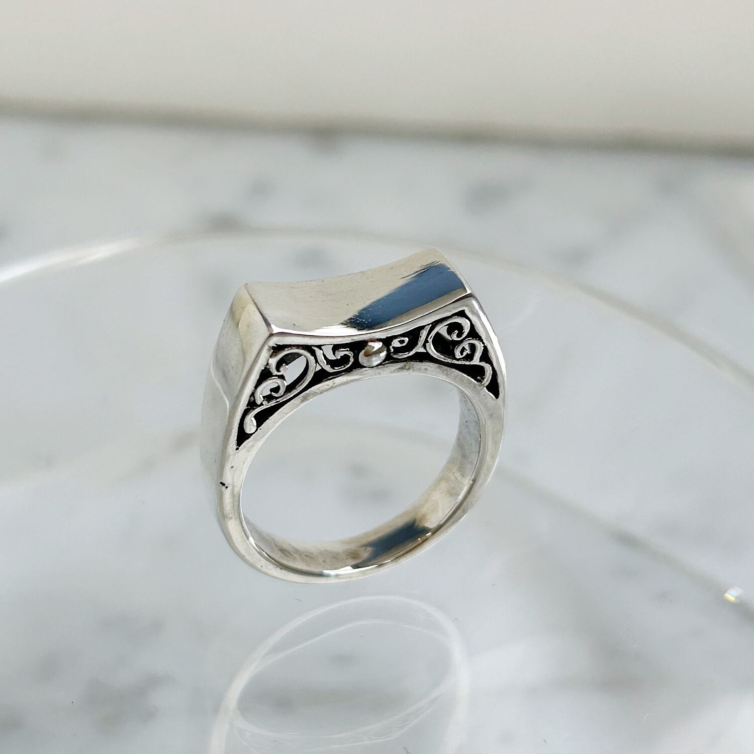 実は側面に唐草模様の透かしをいれたリング。