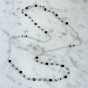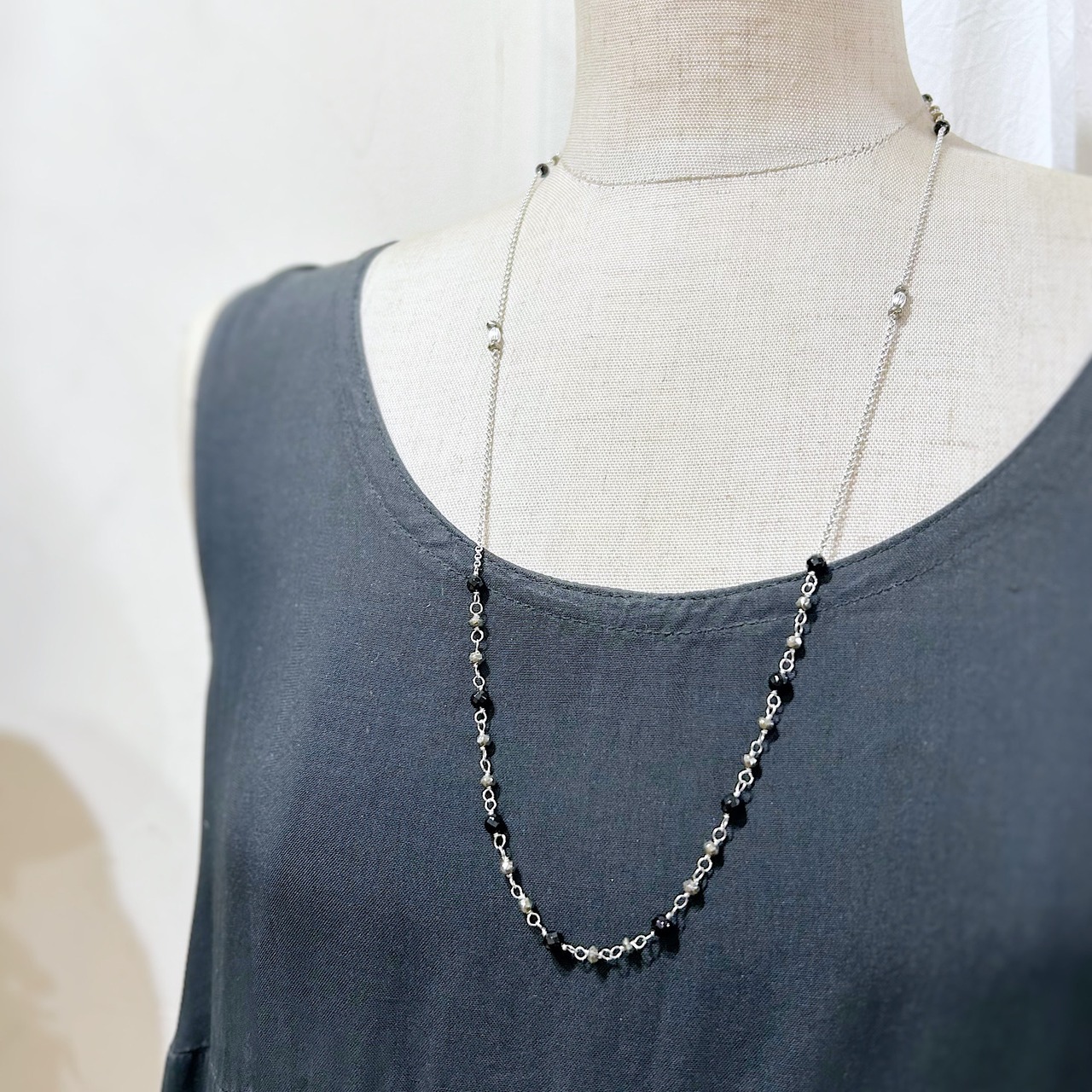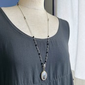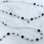 メタリックな輝きを放つパイライトを組み合わせたロングネックレス