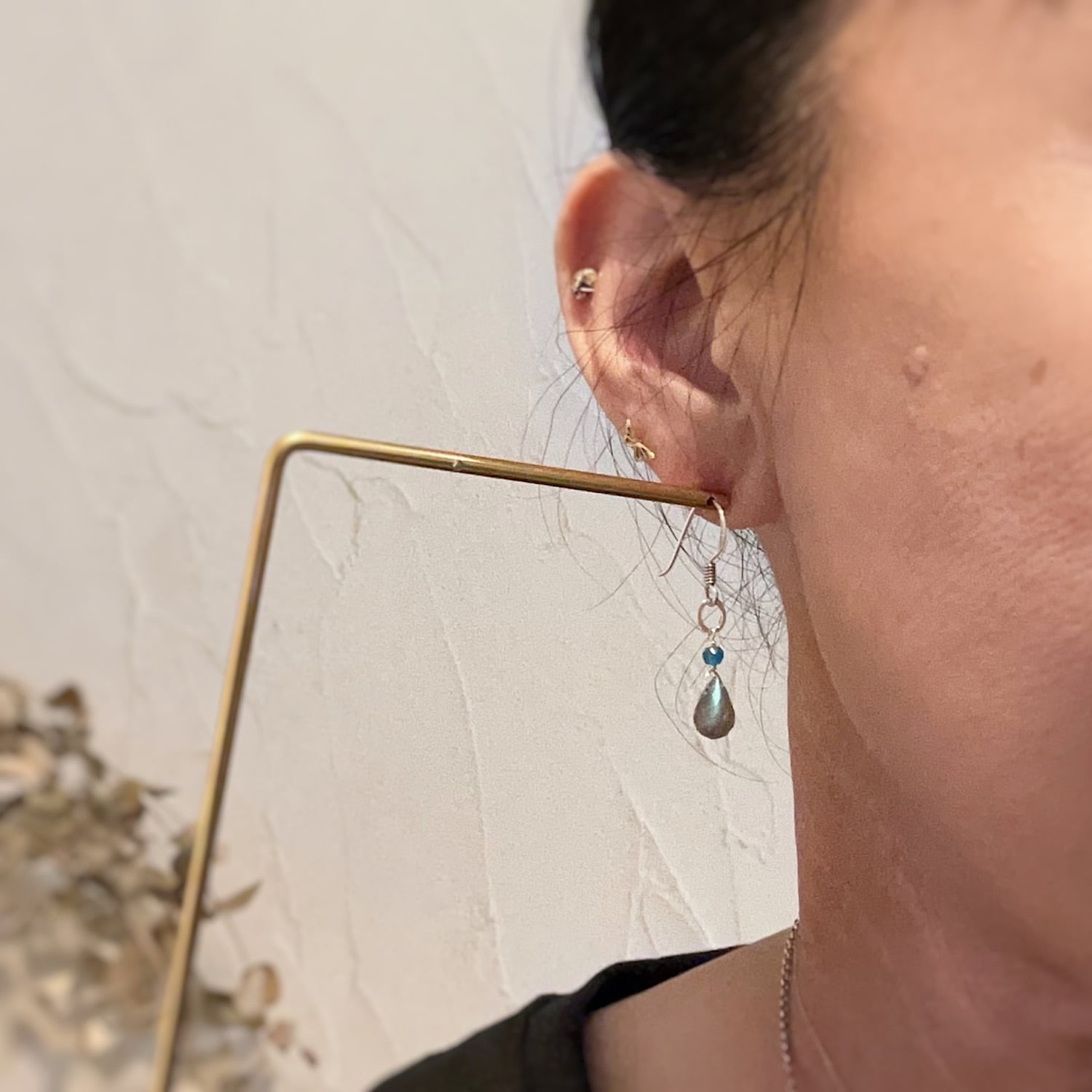 ブルーのシラーが見え隠れする魅力的なピアス。