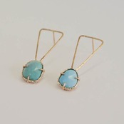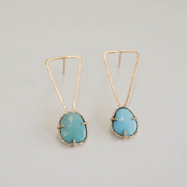 槌目をつけた三角と、ローズカットが施されたスリーピングビューティーターコイズが、キラキラとシンプルでありながら存在感のあるピアスです。