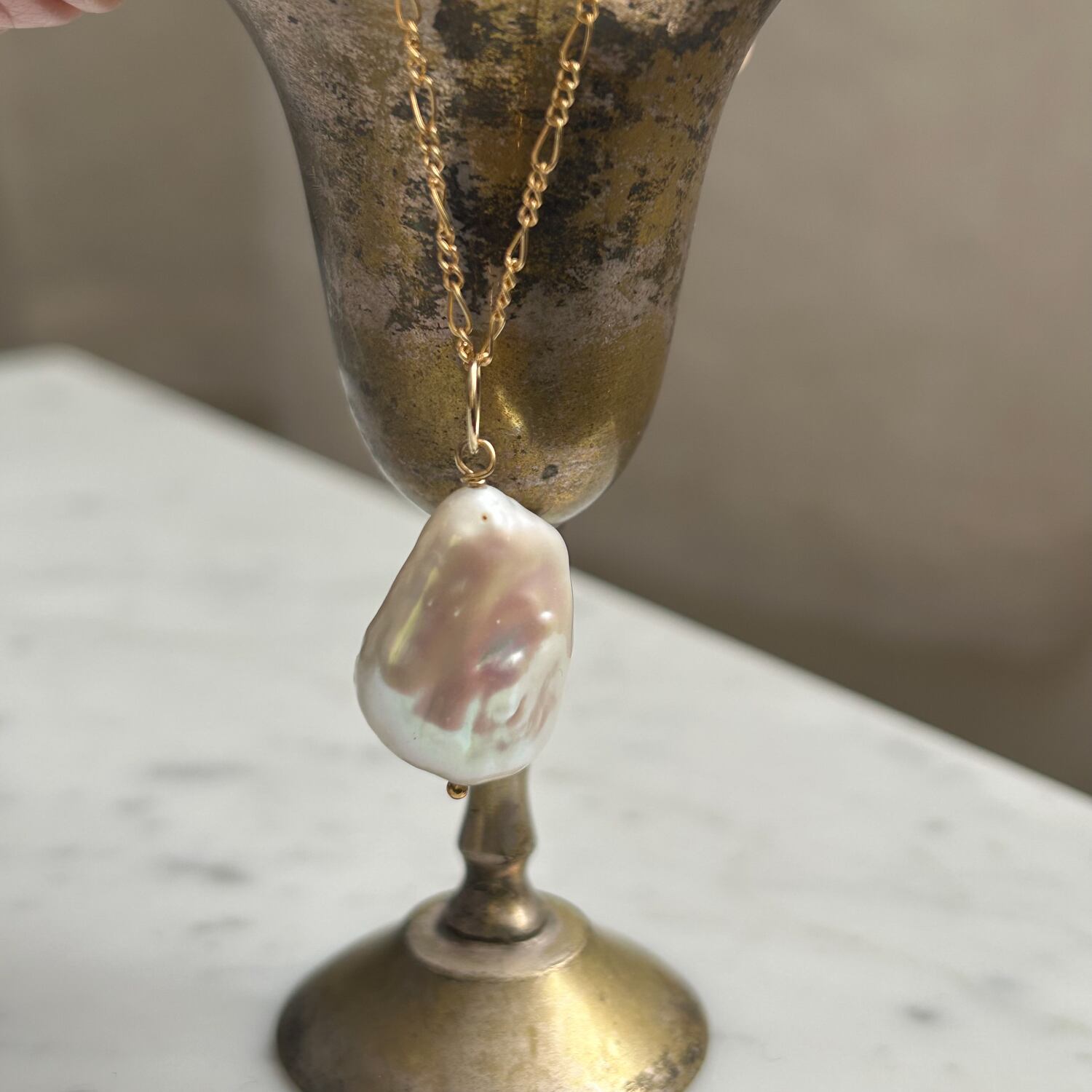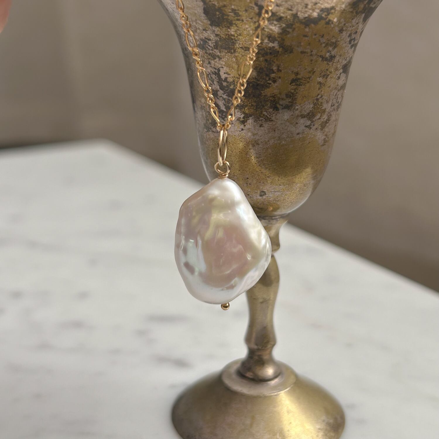 いびつな形の大きめパールがカワイイです。