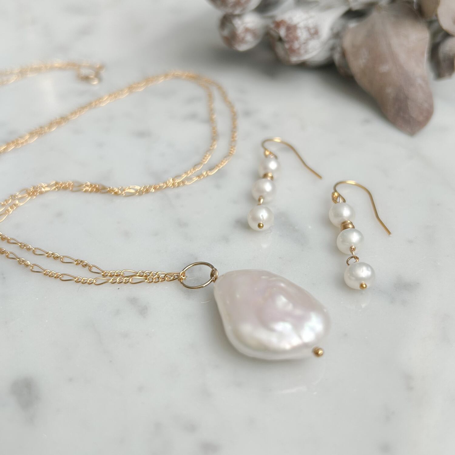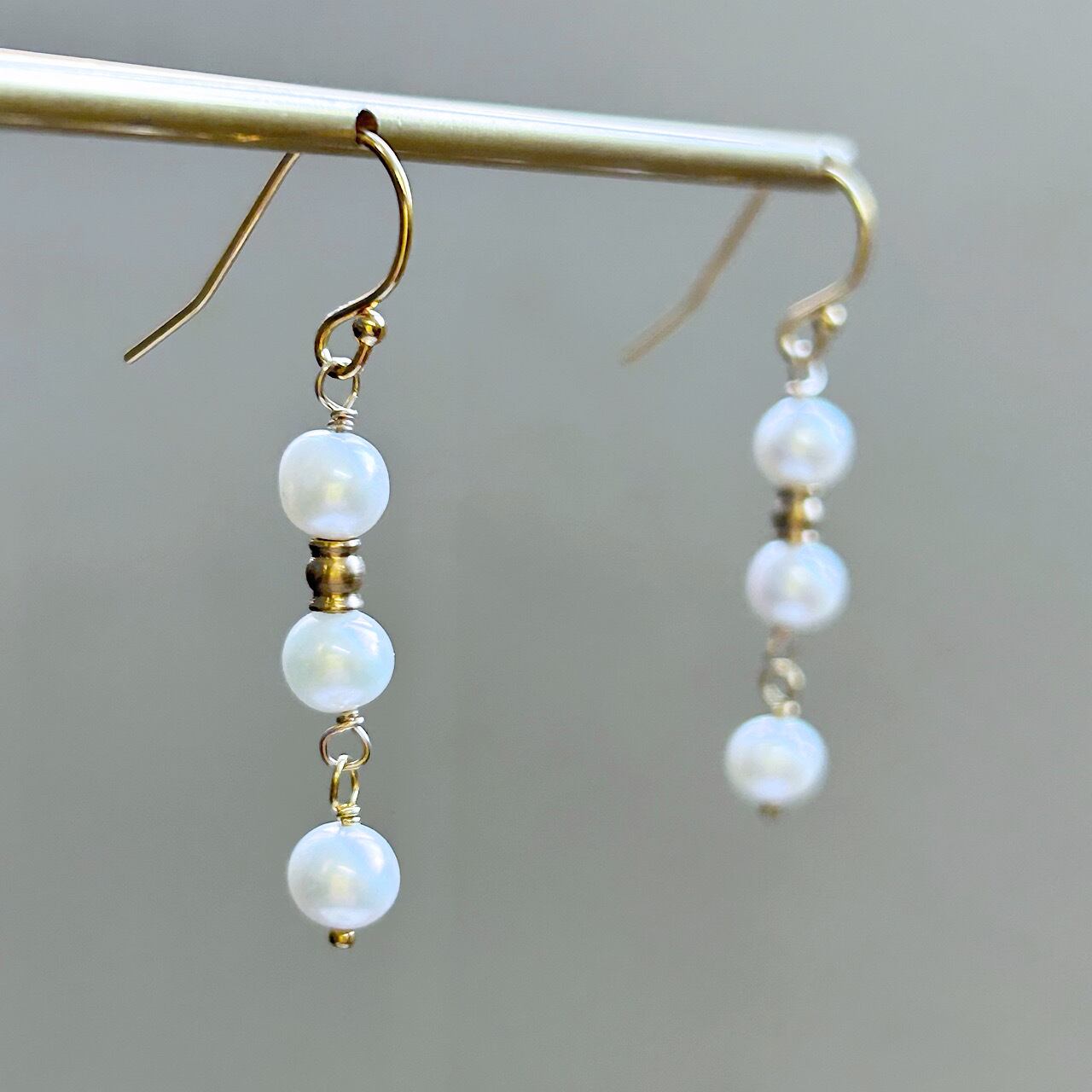 ◆ピアス…淡水パール・真鍮(K18コート)・K14GF