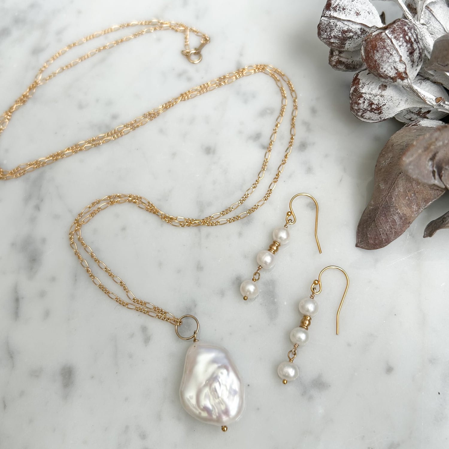 ◆ネックレス…淡水パール・K14GF