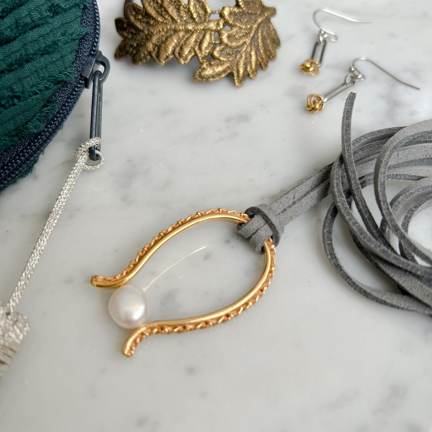 ◆ネックレス…真鍮(K18コート)・淡水パール・スエード調紐