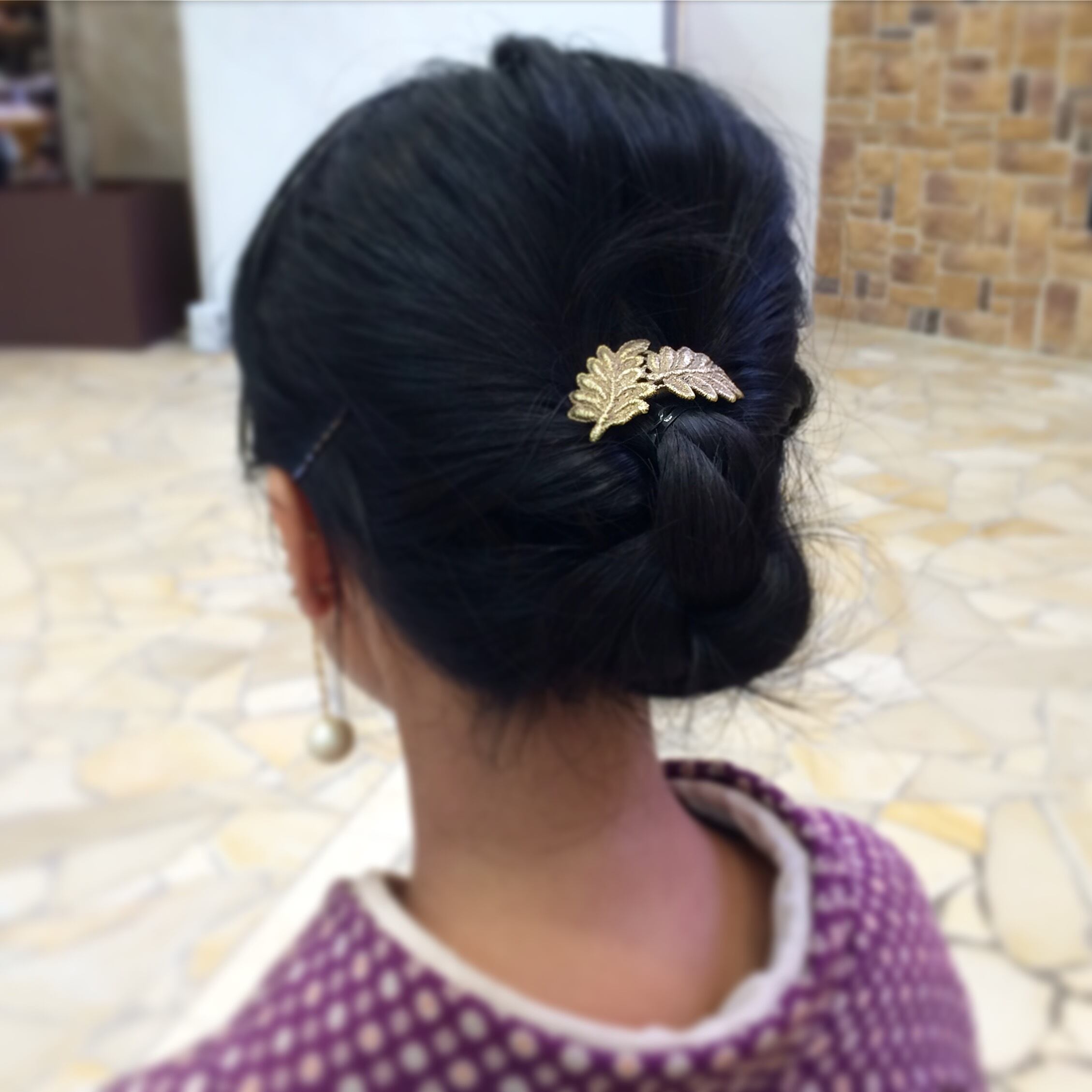 ゴムをはずしてUピンを通して、かんざし風にも◎