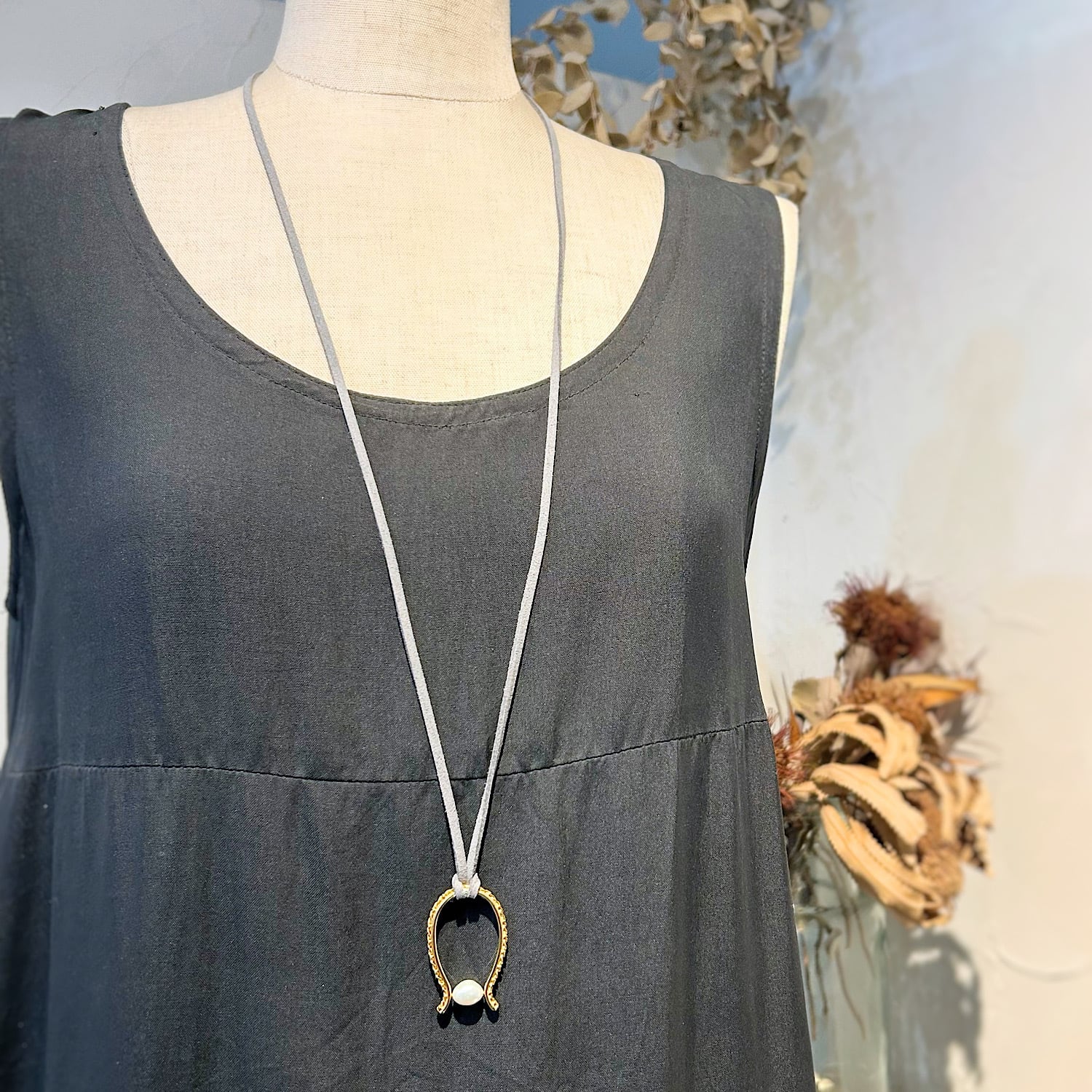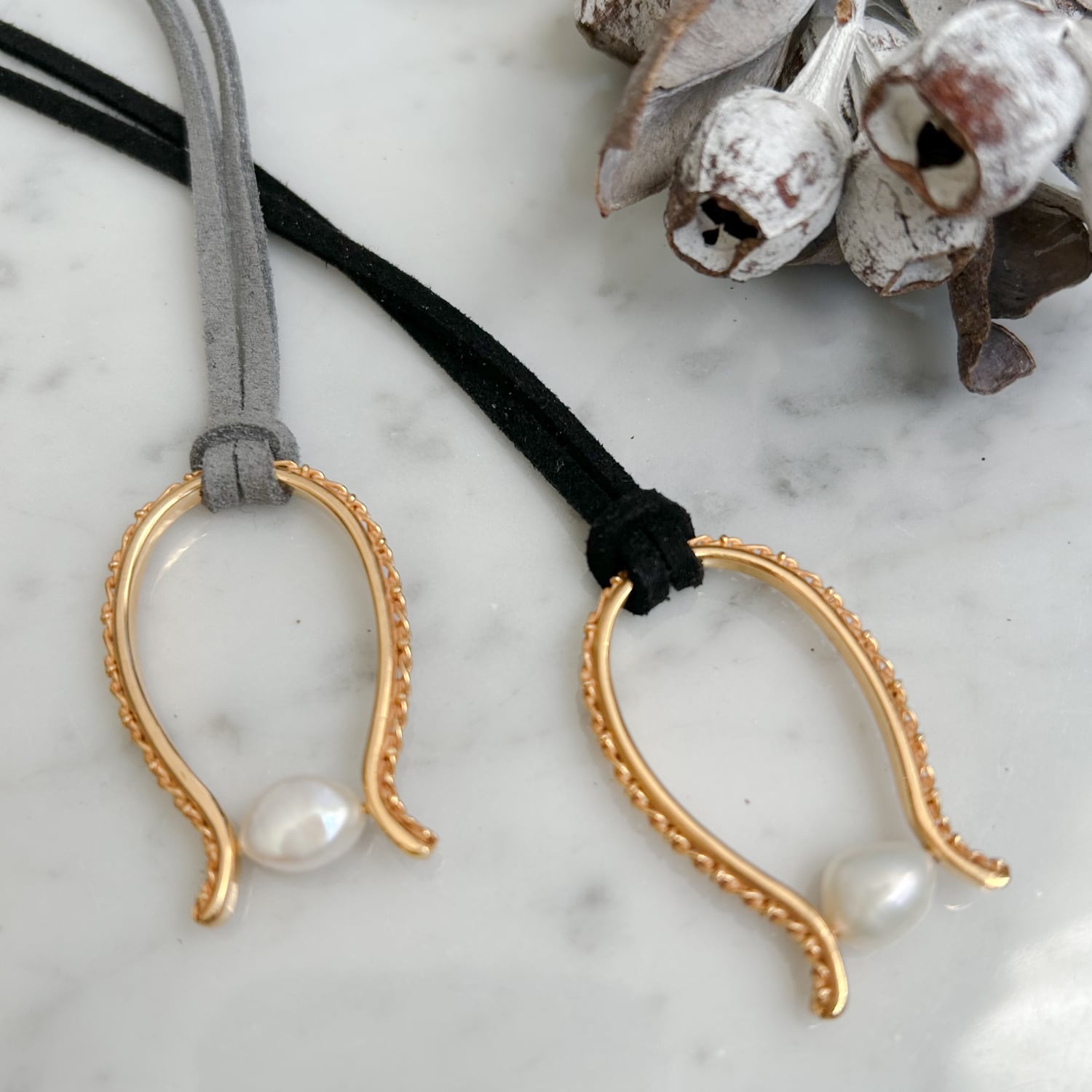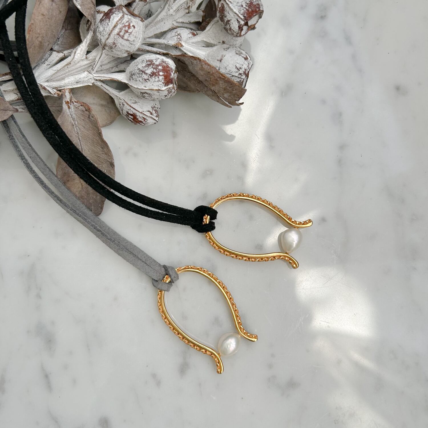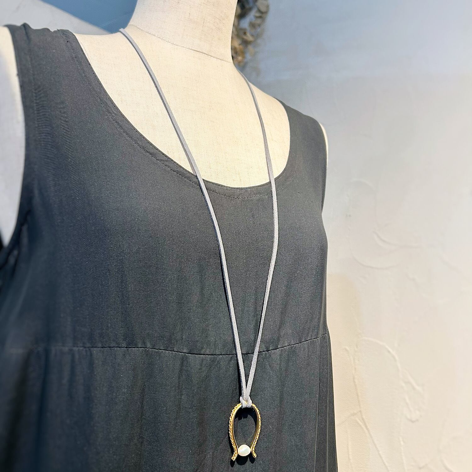◆ネックレス…真鍮(K18コート)・淡水パール・スエード調紐
