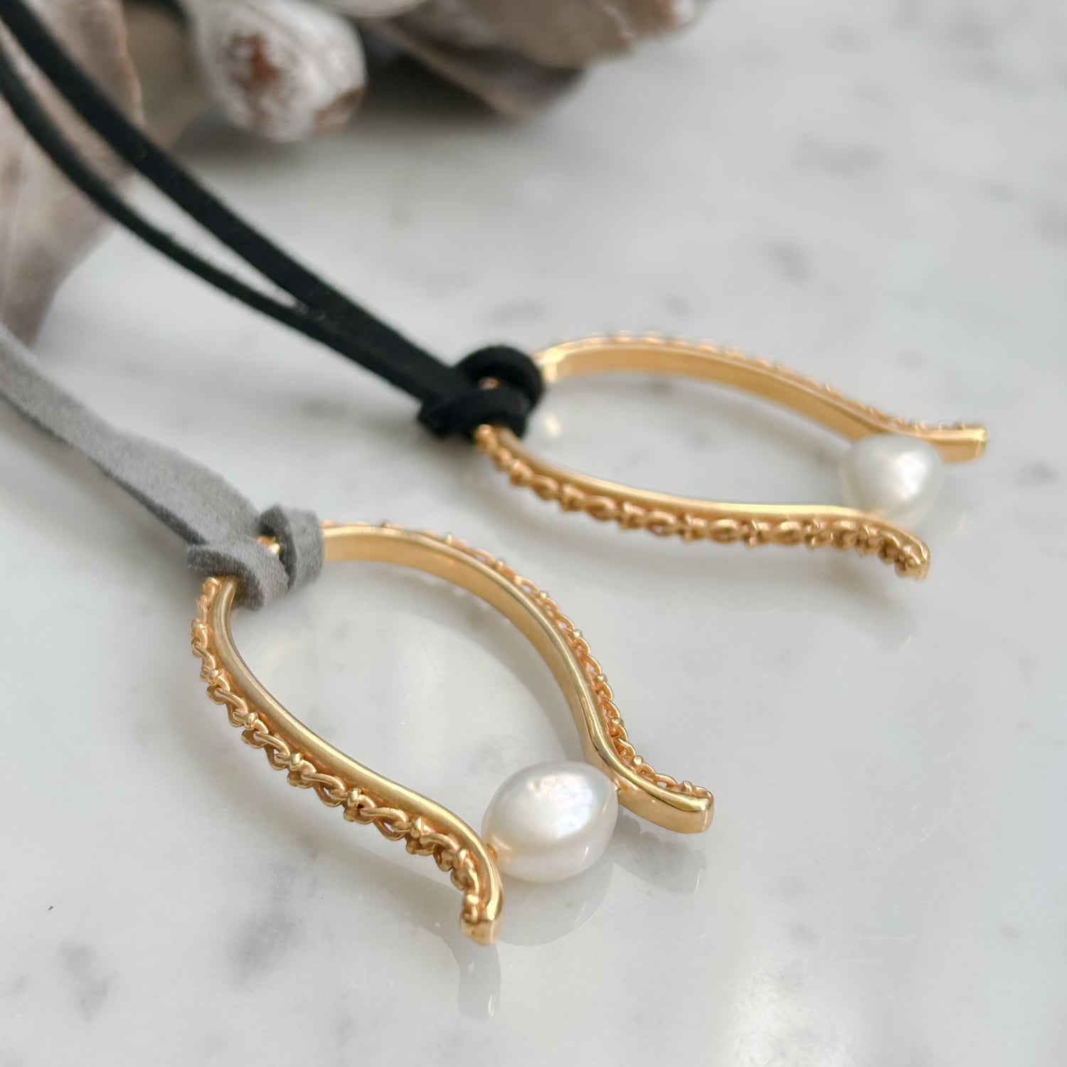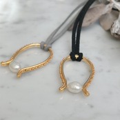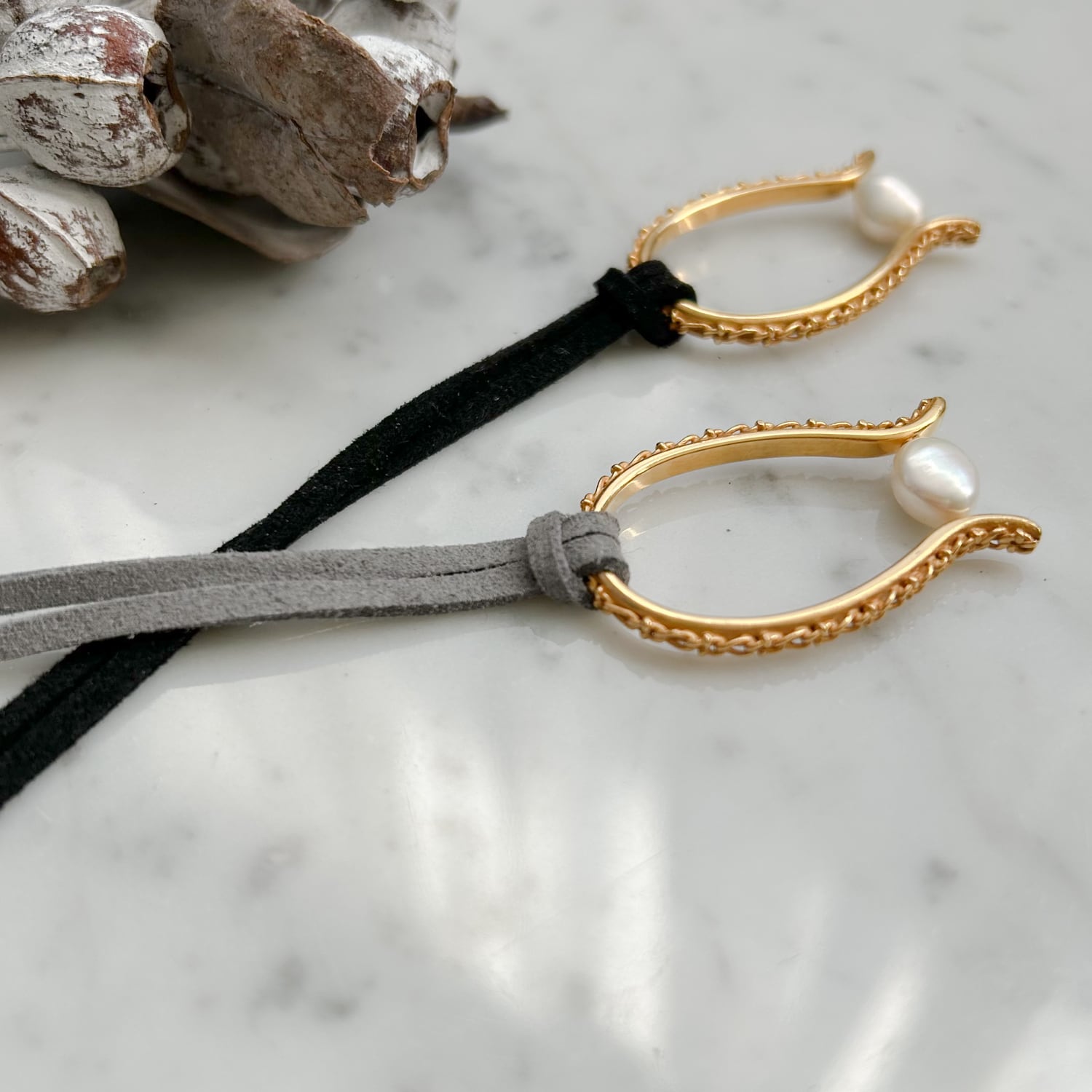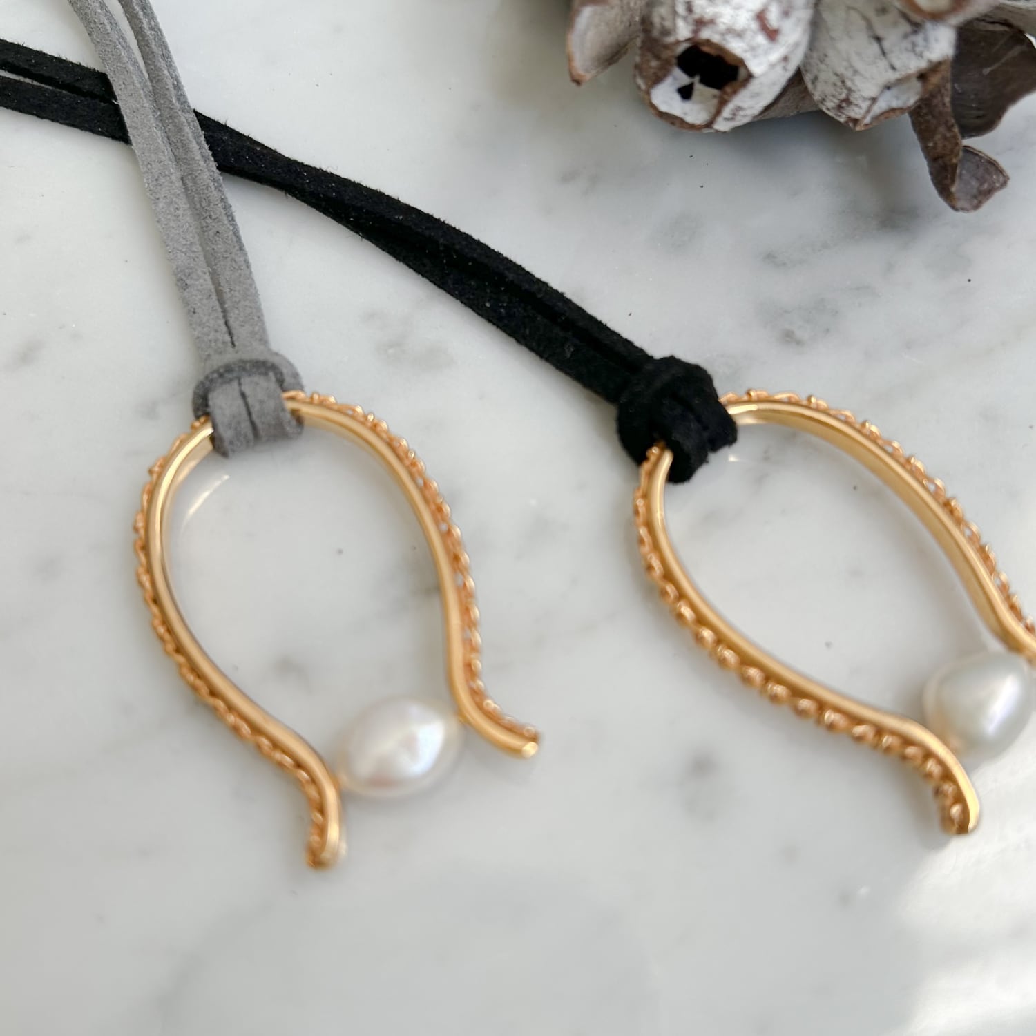 ◆ネックレス…真鍮(K18コート)・淡水パール・スエード調紐