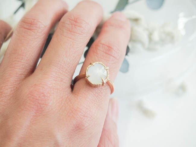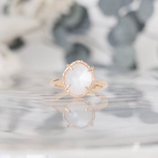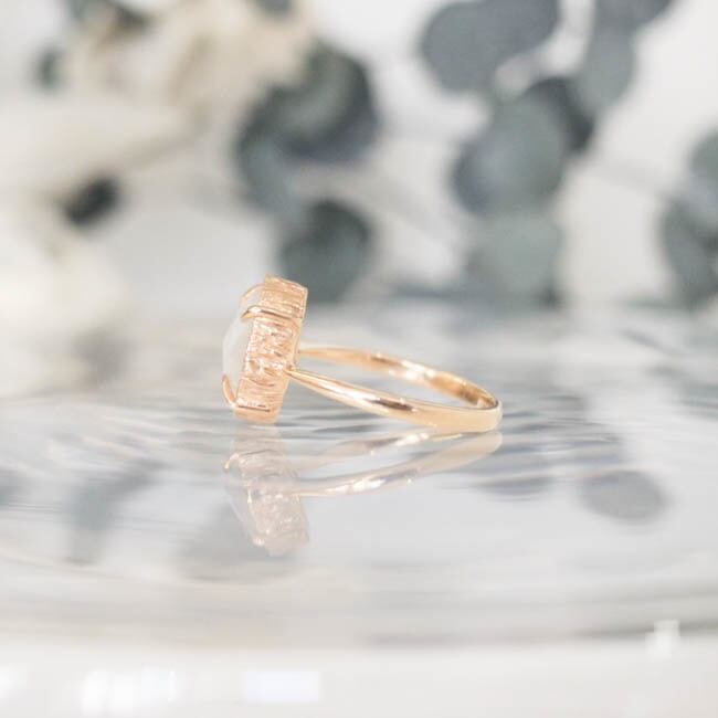 ローズカットが施されたムーンストーンが、優しく光る、大人なリングになりました。