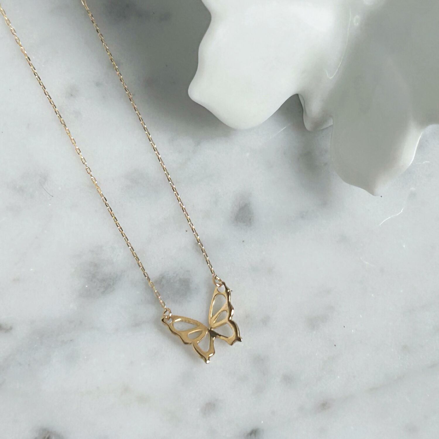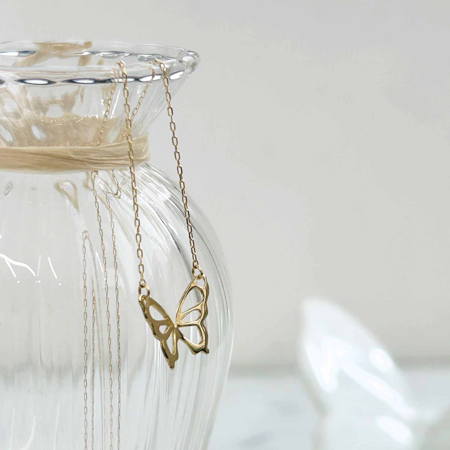 蝶々の可愛らしさもありつつ、K18で大人な輝き。