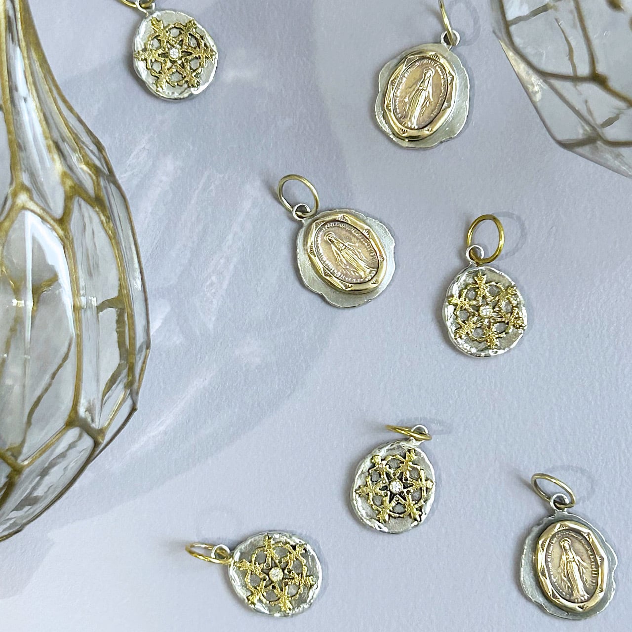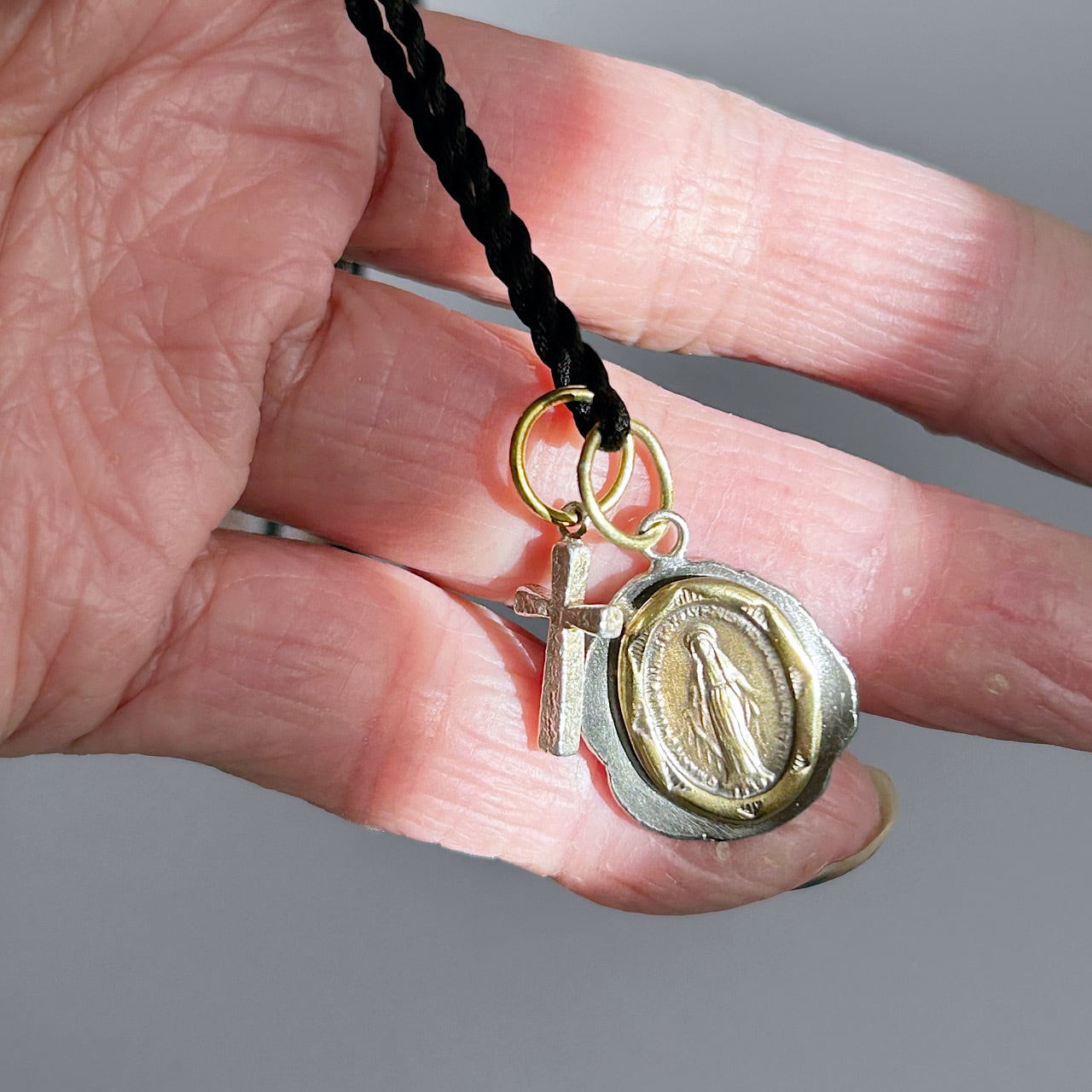 真鍮のメダイ、マリア様をつけたチャーム。(写真1枚目右)