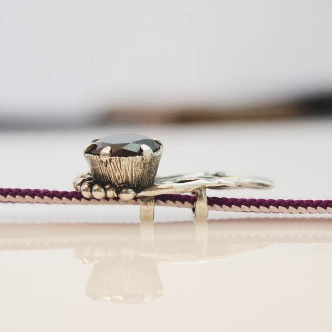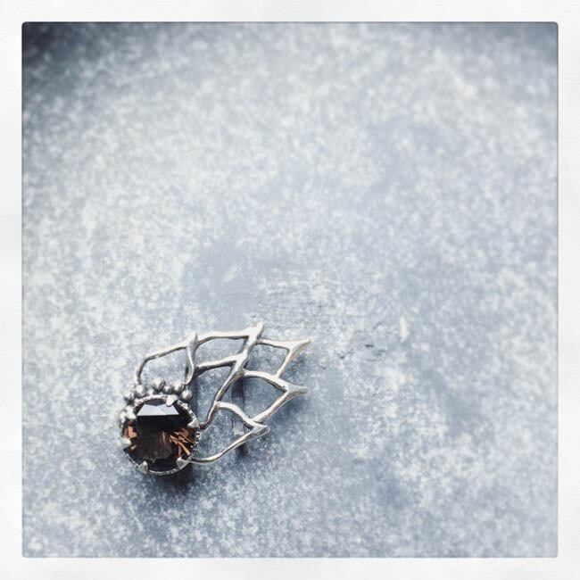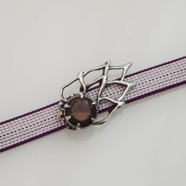 カットの入ったスモーキークォーツに広がりのある花びらをつけた、カッコイイ帯留めです。