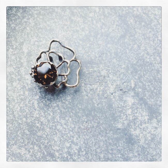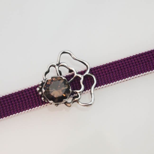 カットの入ったスモーキークォーツがきらりと光る、可愛らしさの中に落ち着きのある帯留めです。